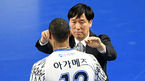 [OSEN=천안, 박재만 기자] 도드람 2018-2019 V리그 포스트시즌 1차전 남자부 현대캐피탈과 우리카드의 경기가 16일 오후 충남 천안시 서북구 백석동 유관순체육관에서 열렸다.우리카드 신영철 감독이 아가메즈와 하이파이브를 하고