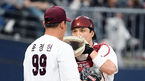 [OSEN=고척, 이동해 기자] 16일 오후 서울 고척스카이돔에서 열린 ’2019 KBO리그 시범경기' 키움 히어로즈와 롯데 자이언츠의 경기, 6회초 키움 포수 박동원이 교체돼 포구에 힘쓰고 있다. / eastsea@osen.co.kr