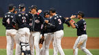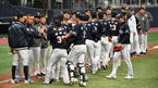 [OSEN=고척, 최규한 기자] 17일 오후 서울 고척스카이돔에서 ’2019 KBO리그 시범경기' 키움 히어로즈와 두산 베어스의 경기, 원정팀 두산이 홈팀 키움을 3-1로 꺾고 승리를 거뒀다.승리한 두산 선수들이 인사를 나누고 있다. /dreame