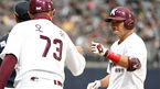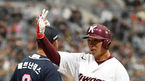 [OSEN=고척, 최규한 기자] 17일 오후 서울 고척스카이돔에서 ’2019 KBO리그 시범경기' 키움 히어로즈와 두산 베어스의 경기가 열렸다.3회말 무사 1루 상황 키움 이지영이 안타를 날리고 1루에 안착해 오윤 코치와 인사를 나누고