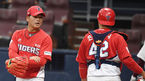 [OSEN=고척, 곽영래 기자] 19일 오후 서울 고척스카이돔에서 '2019 KBO리그 시범경기' 키움 히어로즈와 KIA 타이거즈의 경기가 열렸다.2회말 2사 KIA 김기훈이 한승택과 이야기를 나누고 있다. / youngrae@osen.co.kr