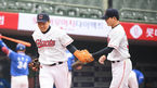 [OSEN=부산,박준형 기자]20일 오후 부산 사직구장에서 열린 KBO리그 시범경기 롯데 자이언츠와 삼성 라이온즈의 경기, 2회초 2사 삼성 김헌곤의 내야뜬공을 호수비로 잡은뒤 박시영 선발투수와 하이파이브를 하고 있다. / soul1014@ose