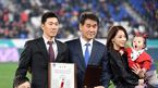 [OSEN=울산, 이대선 기자] 22일 오후 울산 남구 문수월드컵경기장에서 ‘KEB하나은행 초청 축구국가대표팀 친선경기’ 대한민국과 볼리비아의 경기가 열렸다.하프타임 때 전대표팀 김정우가 인퇴식을 갖고 있다./sunday@osen.co.