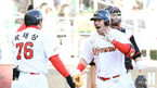 [OSEN=잠실, 최규한 기자] 23일 서울 잠실야구장에서 '2019 신한은행 MY CAR KBO리그 개막전' 두산 베어스와 한화 이글스의 경기가 열렸다.8회초 무사 선두타자로 나선 한화 이성열이 안타를 날리고 1루에 안착해 고동진 코치와 인사를