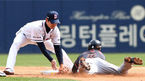 [OSEN=잠실, 최규한 기자] 23일 서울 잠실야구장에서 '2019 신한은행 MY CAR KBO리그 개막전' 두산 베어스와 한화 이글스의 경기가 열렸다.1회초 1사 1루 상황 한화 호잉 타석 때 주자 정근우가 2루 도루를 시도했지만 두산 유격수 김재