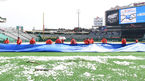 [OSEN=인천, 박준형 기자] 23일 인천 SK행복드림구장에서 열릴 ‘2019년 신한은행 마이카 KBO리그’ 개막전 SK 와이번스와 kt 위즈의 경기에 앞서 SK 관계자들이 방수포를 걷으며 그라운드를 정비하고 있다./soul1014@osen.co.kr