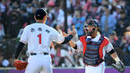 [OSEN=창원, 지형준 기자] 삼성이 NC를 꺾고 개막전 패배를 설욕했다.삼성은 24일 창원NC파크에서 열린 원정 경기에서 4-3 재역전승을 장식했다.경기후 삼성 강민호와 우규민이 승리를 기뻐하고 있다. /jpnews@osen.co.kr