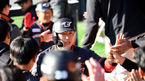 [OSEN=잠실, 최규한 기자] 24일 서울 잠실야구장에서 ’2019 신한은행 MY CAR KBO리그' 두산 베어스와 한화 이글스의 경기가 열렸다.8회초 1사 3루 상황 한화 정근우가 희생플라이를 날리고 더그아웃 동료들과 인사를 나누고 있다./dr