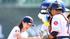 [OSEN=부산, 이대선 기자] 24일 오후 부산 사직야구장에서 ‘2019년 신한은행 마이카 KBO리그’ 롯데 자이언츠와 키움 히어로즈의 경기가 열렸다.경기에 앞서 우주소녀 엑시가 시구를 마치고 마운드를 내려가고 있다./sunday@ose