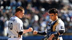 [OSEN=창원, 지형준 기자] 24일 오후 창원NC파크에서 열린 '2019 신한은행 MY CAR KBO리그' NC 다이노스와 삼성 라이온즈의 경기, 1회초 NC 루친스키와 양의지가 서로를 격려하고 있다. /jpnews@osen.co.kr