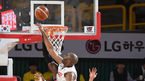[OSEN=창원, 지형준 기자] 24일 오후 창원실내체육관에서 열린 2018-2019 SKT 5GX 프로농구 6강 플레이오프 창원LG와 부산KT 1차전, 1쿼터 KT 랜드리가 슛을 시도하며 LG 조성민의 파울을 얻어내고 있다. /jpnews@osen.co.kr