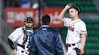 [OSEN=잠실,박준형 기자] 26일 오후 서울 잠실구장에서 진행된 '2019년 신한은행 마이카 KBO리그’ 두산 베어스와 키움 히어로즈의 경기, 5회초 1실점 허용한 두산 선발투수 후랭코프가 박세혁 포수와 이야기를 나누고 있다./ soul1