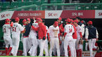 [OSEN=문학, 이동해 기자] 27일 오후 문학 SK 행복드림구장에서 진행된 '2019년 신한은행 마이카 KBO리그’ SK 와이번스와 LG 트윈스의 경기, SK 김태훈이 무실점으로 9회초 이닝을 마친 후 더그아웃으로 향하며 팀원들과 기쁨을 나