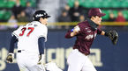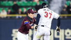 [OSEN=잠실,박준형 기자] 28일 오후 서울 잠실구장에서 진행된 '2019년 신한은행 마이카 KBO리그’ 두산 베어스와 키움 히어로즈의 경기. 2회말 1사 1루 두산 김재환의 병살타때 김하성 유격수가 1루 주자 박건우를 태그아웃시킨