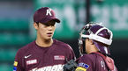 [OSEN=잠실,박준형 기자] 28일 오후 서울 잠실구장에서 진행된 '2019년 신한은행 마이카 KBO리그’ 두산 베어스와 키움 히어로즈의 경기. 1회말 키움 선발투수 안우진이 이지영 포수와 이야기를 나누고 있다. / soul1014@osen.co.kr
