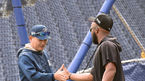 [OSEN=창원, 곽영래 기자] 28일 오후 경남 창원NC파크에서 열리는 ’2019 신한은행 MY CAR KBO리그' NC 다이노스와 kt 위즈의 경기에 앞서 NC 채종범 코치와 kt 로하스가 인사를 나누고 있다. /youngrae@osen.co.kr