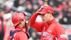 [OSEN=수원,박준형 기자] 31일 오후 경기도 수원시 kt위즈파크에서 진행된 '2019년 신한은행 마이카 KBO리그’ kt 위즈와 KIA 타이거즈의 경기, 3회말 동점 허용한 KIA 황인준 선발투수와 한승택 포수가 이야기를 나누고 있다. / soul10