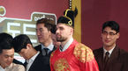 [OSEN=이동해 기자] 1일 오후 서울 양재동 더케이호텔에서 열린 2018-2019 도드람 V리그 시상식에서 현대캐피탈 파다르가 최태웅 감독의 감독상을 축하하고 있다. / eastsea@osen.co.kr