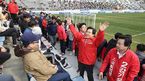 [OSEN=우충원 기자]황교안 자유한국당 대표는 지난달 30일 경남FC와 대구FC 간 경기가 열린 창원축구센터를 방문했다가, 경기장 안까지 들어와 관중석에서 선거운동을 펼치는 모습이 목격됐다.황 대표는 자유한국당 로고가 새겨