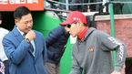 [OSEN=인천, 박재만 기자] 2일 오후 인천 SK행복드림구장에서 '2019 신한은행 MY CAR KBO리그' SK 와이번스와 롯데 자이언츠의 경기가 열린다.올 시즌부터 해설위원으로 변신한 이상훈 전 코치와 염경엽 SK 감독과 대화를 나누고 있다. /