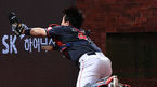 [OSEN=인천, 박재만 기자] 2일 오후 인천 SK행복드림구장에서 '2019 신한은행 MY CAR KBO리그' SK 와이번스와 롯데 자이언츠의 경기가 열렸다.8회말 1사 1루 SK 김강민의 타구를 롯데 포수 김준태가 몸을 날려 잡아내고 있다. /pjmpp@osen.co.kr