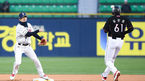 [OSEN=잠실, 박준형 기자] 3일 오후 서울 잠실구장에서 2019 신한은행 마이카 KBO리그 두산 베어스와 kt 위즈의 경기가 진행됐다.1회초 무사 1루 강백호의 병살타때 김재호 유격수가 1루 주자 유한준을 포스아웃시킨뒤 1루로 송구하