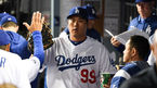 [OSEN=LA(미국 캘리포니아주), 최규한 기자] 3일(한국시간) 미국 캘리포니아주 로스앤젤레스 다저스타디움에서 열린 ’2019 메이저리그’ LA 다저스와 샌프란시스코 자이언츠의 경기, 7회초 이닝종료 후 류현진이 동료들의 축