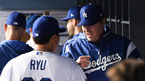 [OSEN=LA(미국 캘리포니아주), 최규한 기자] 3일(한국시간) 미국 캘리포니아주 로스앤젤레스 다저스타디움에서 열린 ’2019 메이저리그’ LA 다저스와 샌프란시스코 자이언츠의 경기, 7회초 이닝종료 후 류현진이 첫 호흡을 맞