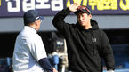 [OSEN=잠실, 박재만 기자] 4일 오후 서울 잠실야구장에서 ‘2019 신한은행 MY CAR KBO리그’ 두산 베어스와 kt 위즈의 경기가 열린다.두산 김재호가 정경배 코치와 대화를 나누고 있다. /pjmpp@osen.co.kr