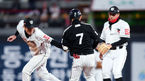[OSEN=수원, 이동해 기자] 5일 오후 수원 케이티위즈파크에서 '2019년 신한은행 마이카 KBO리그' KT 위즈와 LG 트윈스의 경기가 진행됐다.2회초 2사 1루 적시타를 뽑아낸 LG 정주현이 2루에서 3루를 향하던 도중 태그아웃 되고 있다. / eas