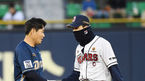 [OSEN=잠실, 곽영래 기자] 5일 오후 서울 잠실야구장에서 ‘2018 신한은행 MY CAR KBO리그' 두산 베어스와 NC 다이노스의 경기가 열렸다.2회초 NC 양의지가 타석에 들어서면서 두산 박세혁과 이야기를 나누고 있다. / youngrae@osen.co.kr