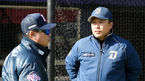 [OSEN=수원, 이동해 기자] 5일 오후 수원 케이티위즈파크에서 열릴 '2019년 신한은행 마이카 KBO리그' KT 위즈와 LG 트윈스 선수들이 몸을 풀고 있는 가운데 양팀 감독이 만나 이야기를 나눴다.경기 시작 전 KT 이강철 감독-LG LG 류중일