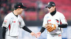 [OSEN=수원, 이동해 기자] 6일 오후 수원 케이티위즈파크에서 '2019년 신한은행 마이카 KBO리그' KT 위즈와 LG 트윈스의 경기가 진행됐다.5회초 KT 선발투수 금민철이 호수비를 선보인 심우준에게 고마움을 표하고 있다. / eastsea@osen.co.k