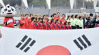 [OSEN=용인, 이동해 기자] 6일 오후 경기용인시민체육공원주경기장에서 여자대표팀 A매치 한국과 아이슬란드의 경기가 열렸다.경기 시작 전 한국 선수들이 국민의례를 하고 있다. / eastsea@osen.co.kr