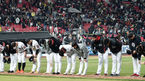 [OSEN=수원, 이동해 기자] 6일 오후 수원 케이티위즈파크에서 열린 '2019년 신한은행 마이카 KBO리그' KT 위즈와 LG 트윈스의 경기, KT 위즈가 2:1 짜릿한 승리를 거뒀다.KT 선수단이 팬들에게 인사를 하고 있다. / eastsea@osen.co.kr