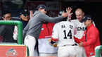 [OSEN=문학, 이동해 기자] 7일 오후 문학 SK 행복드림구장에서 '2019년 신한은행 마이카 KBO리그’ SK 와이번스와 삼성 라이온즈의 경기가 열렸다.7회말 SK 염경엽 감독이 최정의 동점 솔로홈런을 칭찬하고 있다. / eastsea@osen.co.kr