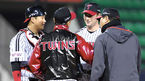 [OSEN=잠실, 곽영래 기자] 10일 오후 서울 잠실야구장에서 ‘2018 신한은행 MY CAR KBO리그' LG 트윈스와 삼성 라이온즈의 경기가 열렸다.7회초 1사 1,2루 LG 최일언 코치가 마운드에 올라 윌슨과 이야기를 나누고 있다. / youngrae@osen.co.k
