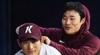 [OSEN=고척, 민경훈 기자] 12일 오후 서울 고척스카이돔에서 ‘2019 신한은행 MY CAR KBO리그' 키움 히어로즈와 한화 이글스의 경기가 열렸다.9회초 무사 주자 1,2루 한화 김태균 타석에서 조상우와 박동원이 얘기를 나누고 있다./rum