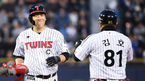 [OSEN=잠실,박준형 기자] 13일 오후 서울 잠실구장에서 '2019 신한은행 MY CAR KBO리그' LG 트윈스와 두산 베어스의 경기가 진행됐다.5회말 1사 2,3루 LG 채은성이 역전 2타점 적시타를 날리고 김호 코치와하이파이브를 하고 있다. / soul101