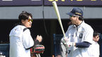 [OSEN=잠실,박준형 기자] 13일 오후 서울 잠실구장에서 '2019 신한은행 MY CAR KBO리그' LG 트윈스와 두산 베어스의 경기가 진행된다.경기에 앞서 LG 이천웅과 두산 박건우가 이야기를 나누고 있다. / soul1014@osen.co.kr