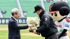 [OSEN=잠실, 지형준 기자] 14일 오후 서울 잠실야구장에서 ’2019 신한은행 MY CAR KBO 리그’ LG 트윈스와 두산 베이스의 경기가 열렸다.경기에 앞서 문승훈 심판위원의 2,500경기 출장기념 시상식이 열렸다. 정운찬 KBO총재가 문