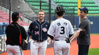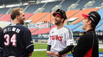 [OSEN=잠실, 지형준 기자] 14일 오후 서울 잠실야구장에서 ’2019 신한은행 MY CAR KBO 리그’ LG 트윈스와 두산 베이스의 경기가 열린다.경기에 앞서 두산 린드블럼이 LG 켈리, 윌슨이 이야기를 나누고 있다. /jpnews@osen.co.kr