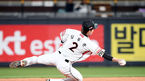 [OSEN=수원, 이동해 기자] 16일 오후 수원 케이티위즈파크에서 '2019년 신한은행 마이카 KBO리그' KT 위즈와 한화 이글스의 경기가 진행됐다.8회초 무사 1,2루 한화 정은원의 내야땅볼 때 KT 유격수 심우준이 몸 날려 타구 잡아낸 뒤 1루