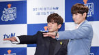 [OSEN=곽영래 기자] 16일 오후 서울 여의도 켄싱턴호텔에서 tvN 예능 '현지에서 먹힐까? 미국편' 제작발표회가 열렸다.이민우, 에릭이 포토타임을 갖고 있다. / youngrae@osen.co.kr