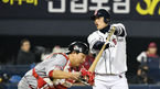 [OSEN=수원, 이동해 기자] 18일 오후 수원 케이티위즈파크에서 '2019년 신한은행 마이카 KBO리그' KT 위즈와 한화 이글스의 경기가 진행됐다.6회말 무사 1루 KT 윤석민의 번트 때 1루에 있던 박경수는 2루 안착했지만 윤석민의 3피트 수