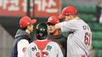 [OSEN=잠실, 박재만 기자] 18일 오후 서울 잠실야구장에서 ‘2019 신한은행 MY CAR KBO리그’ 두산 베어스와 SK 와이번스의 경기가 열렸다.5회말 무사 2,3루 SK 손혁 코치가 마운드를 찾아 다익손을 격려하고 있다. /pjmpp@osen.co.kr