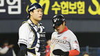[OSEN=수원, 이동해 기자] 18일 오후 수원 케이티위즈파크에서 '2019년 신한은행 마이카 KBO리그' KT 위즈와 한화 이글스의 경기가 진행됐다.1회말 한화 이태양-최재훈 배터리가 마운드에서 이야기 나누고 있다. / eastsea@osen.co.kr