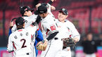 [OSEN=수원, 이동해 기자] 18일 오후 수원 케이티위즈파크에서 '2019년 신한은행 마이카 KBO리그' KT 위즈와 한화 이글스의 경기가 진행됐다.8회초 만루 위기 넘긴 KT 김재윤이 더그아웃으로 향하며 팀원들과 기쁨을 나누고 있다. / east