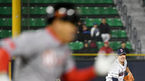[OSEN=수원, 이동해 기자] 18일 오후 수원 케이티위즈파크에서 '2019년 신한은행 마이카 KBO리그' KT 위즈와 한화 이글스의 경기가 진행됐다.8회초 1사 1,2루 한화 대타 정근우가 삼진아웃 당한 후 아쉬운 표정을 짓고 있다. / eastsea@osen.