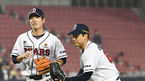[OSEN=잠실, 박재만 기자] 18일 오후 서울 잠실야구장에서 ‘2019 신한은행 MY CAR KBO리그’ 두산 베어스와 SK 와이번스의 경기가 열렸다.8회초 2사 SK 나주환의 타구를 두산 김재호가 처리 한뒤 이형범과 하이파이브를 하고 있다